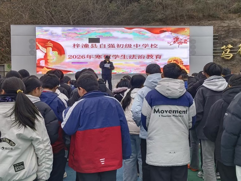 为了进一步加强未成年人保护,强化学生法律安全意识,2026年1月21日,梓潼县自强中学校组织全校师生开展了2026年寒假学生法治安全教育活动。