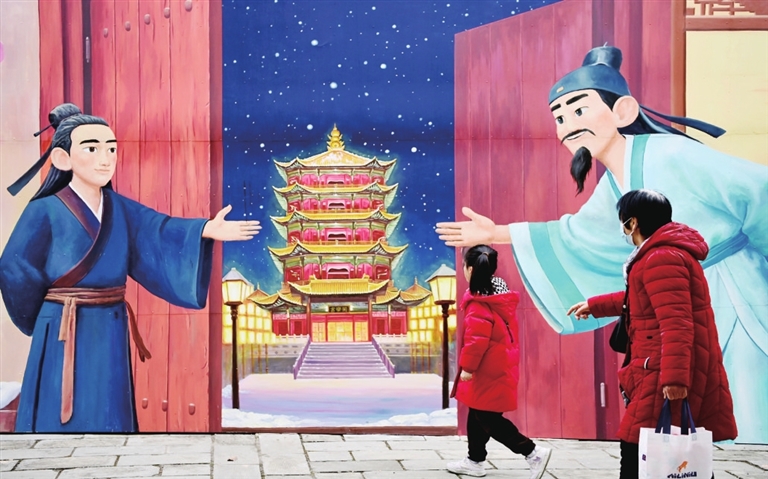 以李白、越王楼等为主题元素的彩画扮靓了城市。