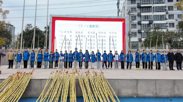 “十一·甜蔗奖”的颁发将典礼推向温馨的高潮。以甘蔗的清甜寓意成长的历程——先经风雨锤炼,终得甘甜回响;这也寄托着该校对学子们“学习进步节节高,生活幸福节节甜”的美好祝愿。