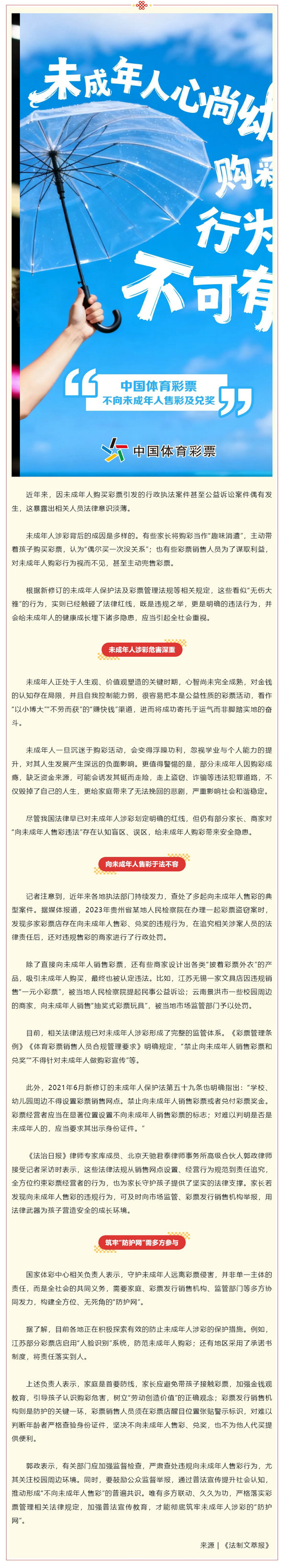 安心购彩守护行动 | 向未成年人售彩?违规且违法!