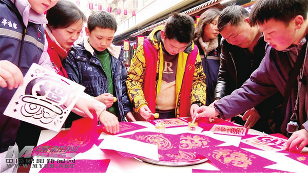 活动现场,社区志愿者还带来了拓印“福”字的体验项目,手把手教居民操作。蘸墨、铺纸、按压,一个个金灿灿的“福”字跃然纸上,大家捧着自己拓印的“福”字,脸上满是欢喜。
