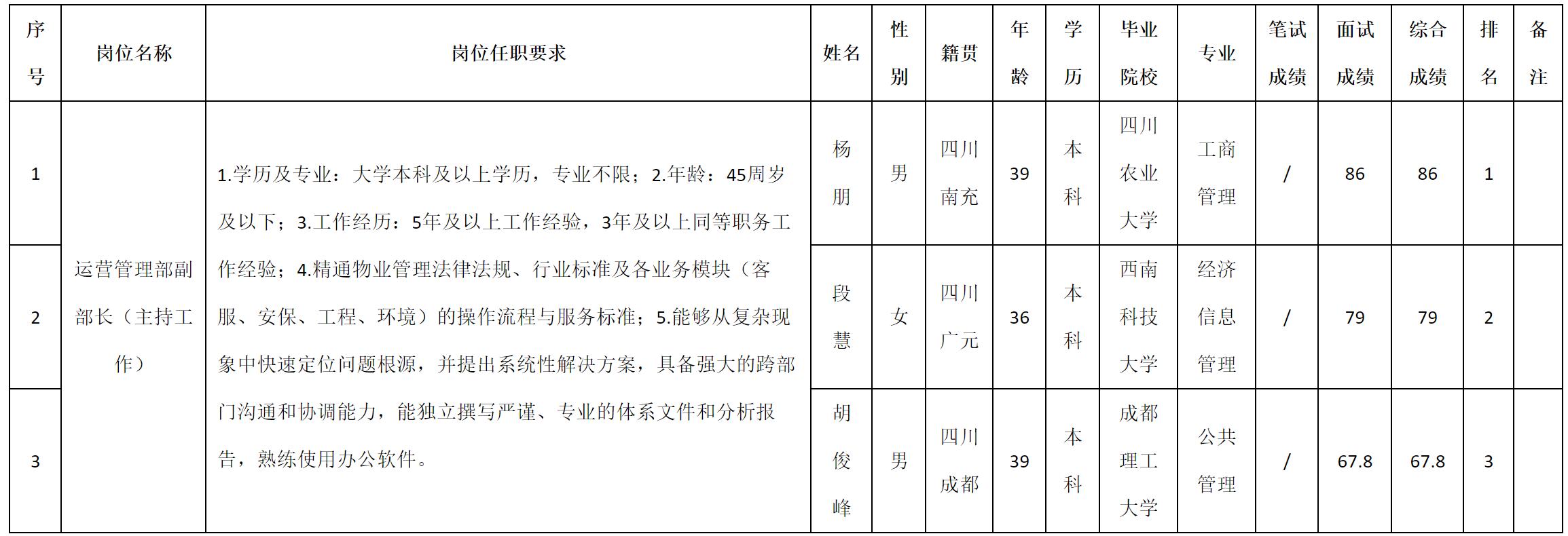 根据新疆九洲千城物业服务有限公司发布的招聘公告及招聘相关规定,现将测试成绩予以公示。
