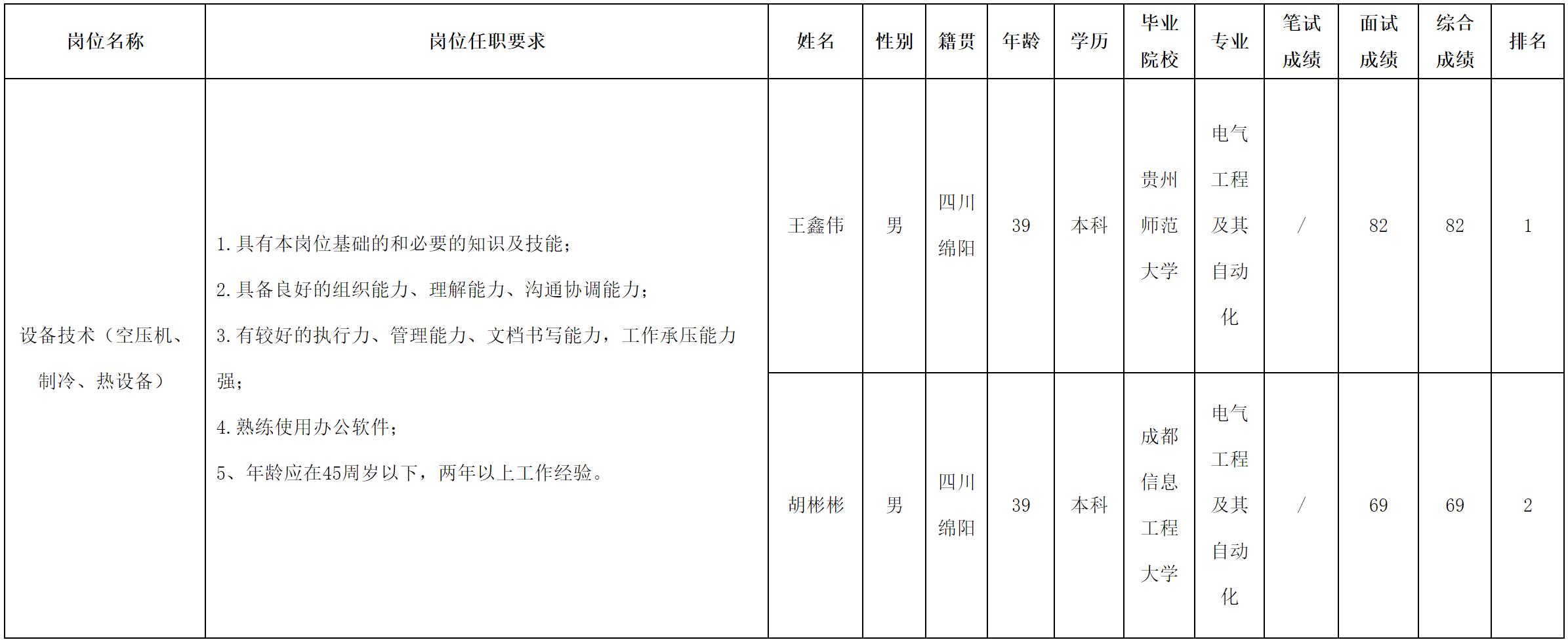 根据长虹电源股份有限公司发布的招聘公告及招聘相关规定,经面试等程序,现将面试成绩予以公示。