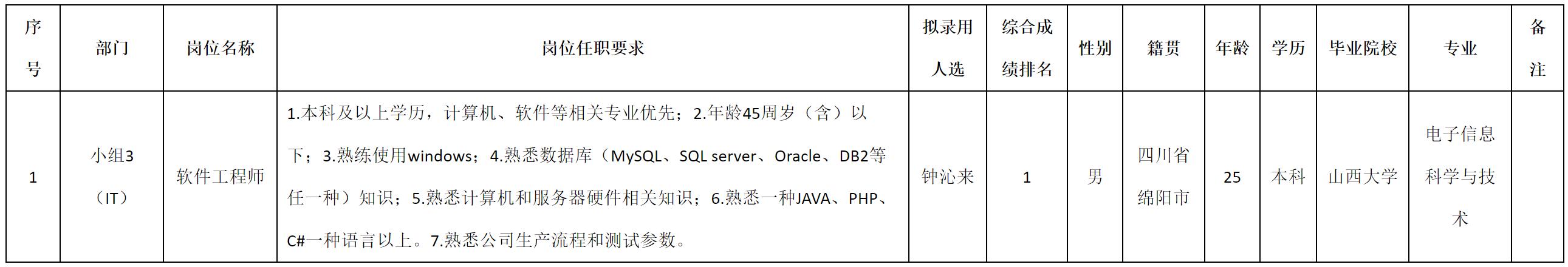 一、拟录用人员