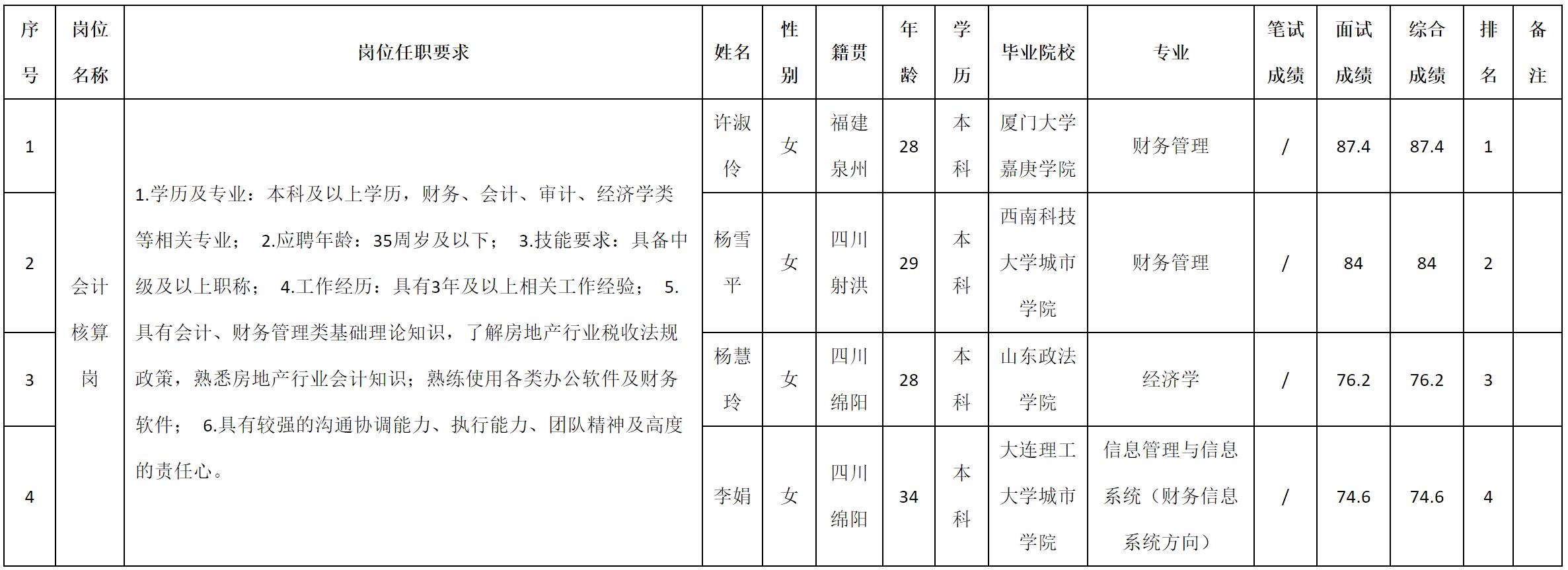 根据九洲千城置业有限责任公司发布的招聘公告及招聘相关规定,现将测试成绩予以公示。