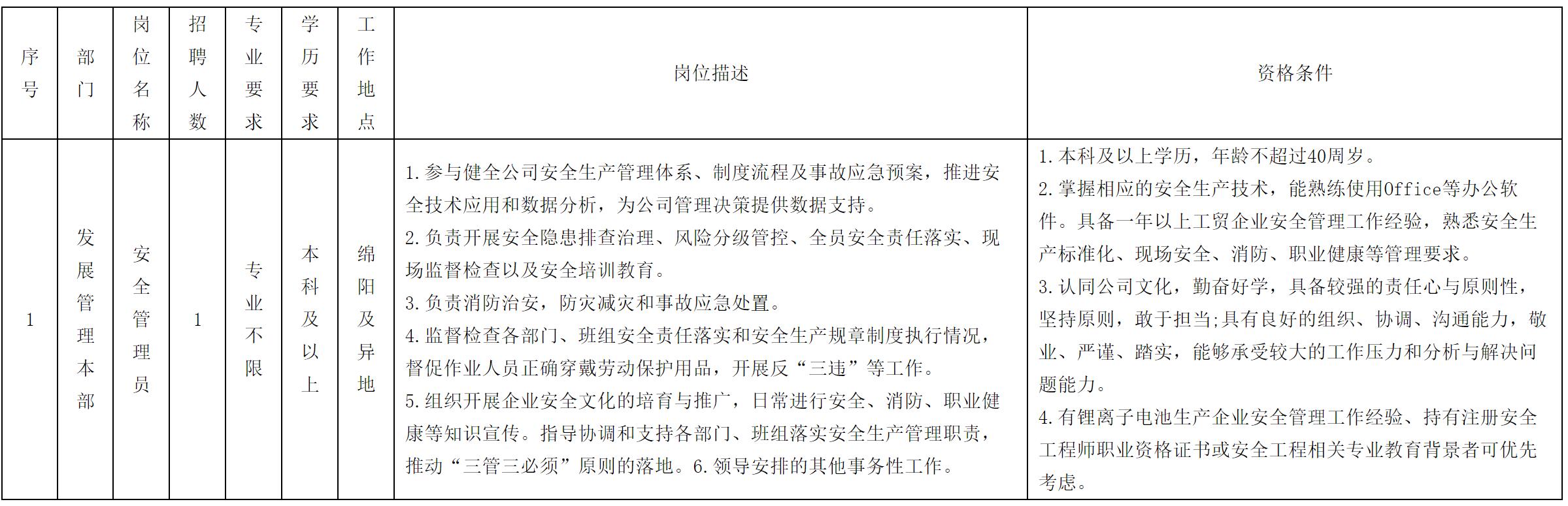 四川长虹新能源科技股份有限公司关于招聘安全管理员岗位的公告