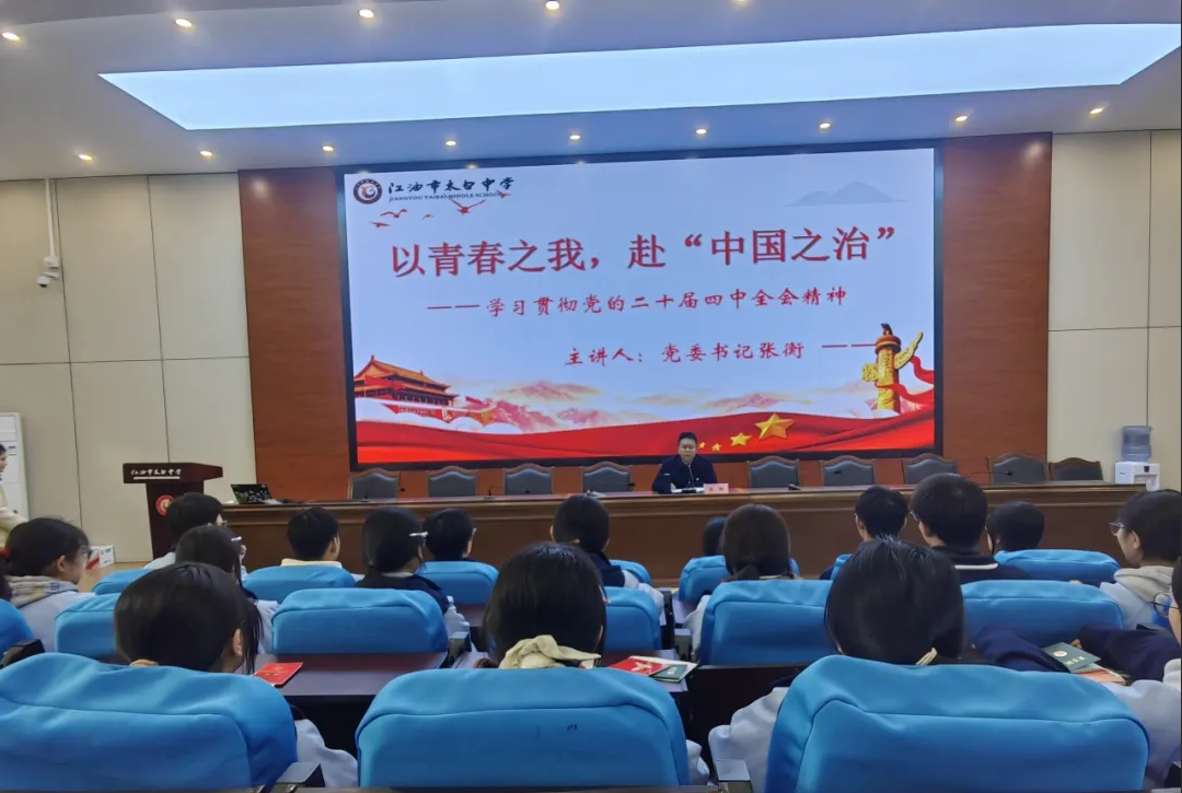 江油市太白中学党委相关负责人表示,下一步,学校将继续把学习贯彻党的二十届四中全会精神引向深入,坚持学思用贯通、知信行统一,深化学习成果转化,将其有机融入教育教学、管理服务与文化建设各环节,以更高远的政治站位、更强烈的历史主动、更扎实的育人成果,坚定走好“高增值发展”之路,奋力书写服务教育强国建设的“太白答卷”,为培养担当民族复兴大任的时代新人、助力江油教育高质量发展贡献太白力量。