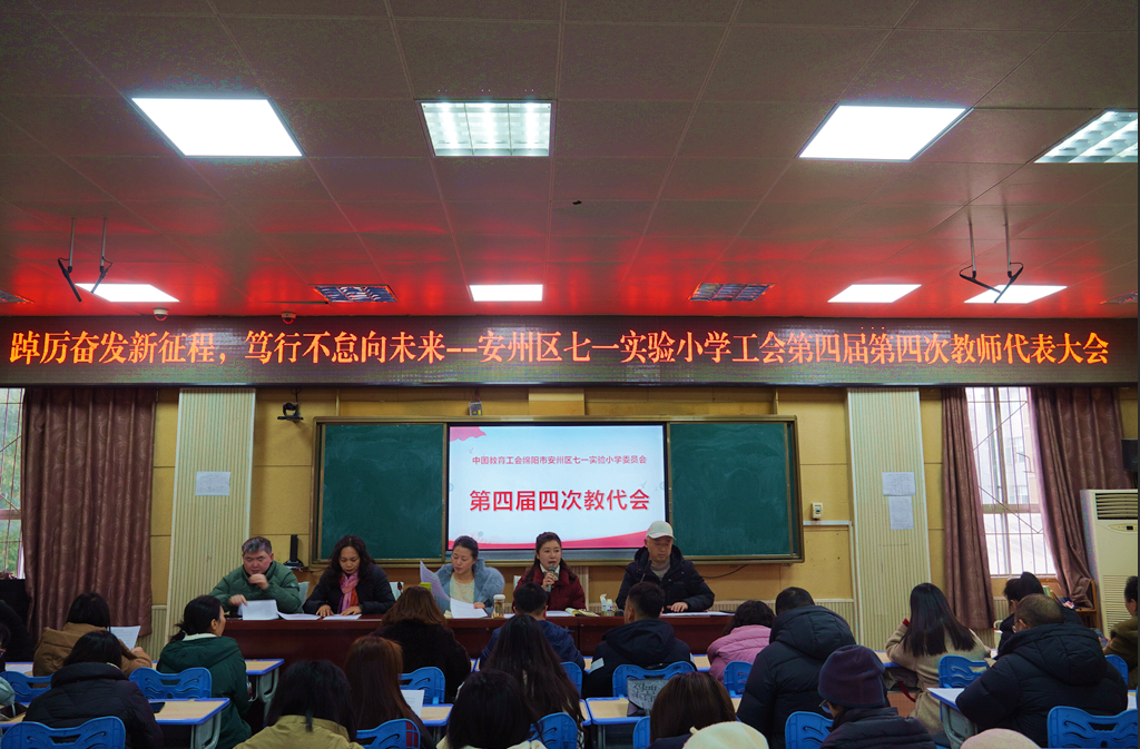 近日,安州区“七一”实验小学工会成功召开了以“深化民主管理 共商发展大计”为主题的第四届第四次教师代表大会。本次大会旨在进一步深化学校民主管理,团结凝聚全体教职工的智慧与力量,共同谋划学校高质量发展蓝图。