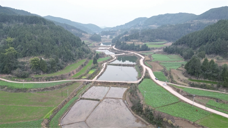 盐亭县黄甸镇利和村连片的鱼塘。 记者 彭紫薇 摄