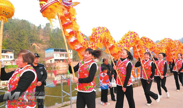 村民们自发组织舞龙等文艺表演。 记者 李春梅 摄