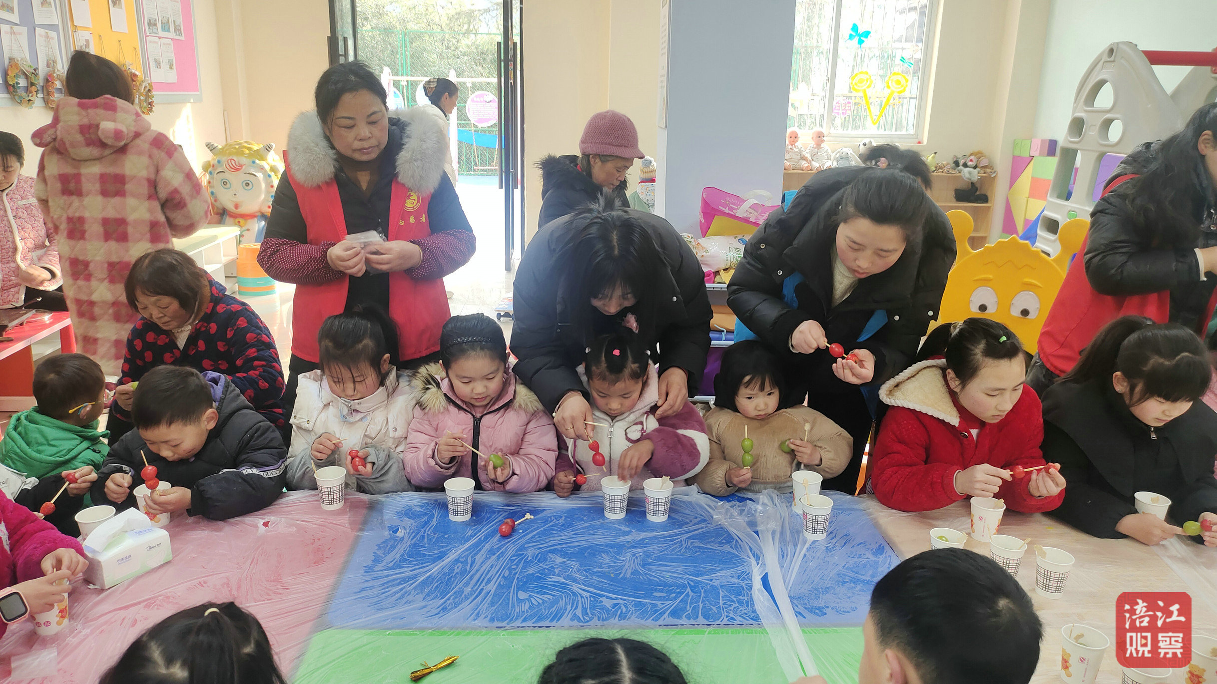 这是该县“寒假趣多多,快乐不打烊”儿童公益托管班开班第一天的一幕。