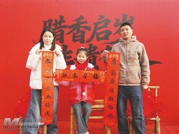 1月26日,涪城区吴家镇举办“腊香启岁·非遗贺春”冬日关爱活动。活动现场,书法爱好者挥毫泼墨,将一幅幅寓意吉祥的新春楹联、福字送到村民和游客手中。记者 尹秦 摄