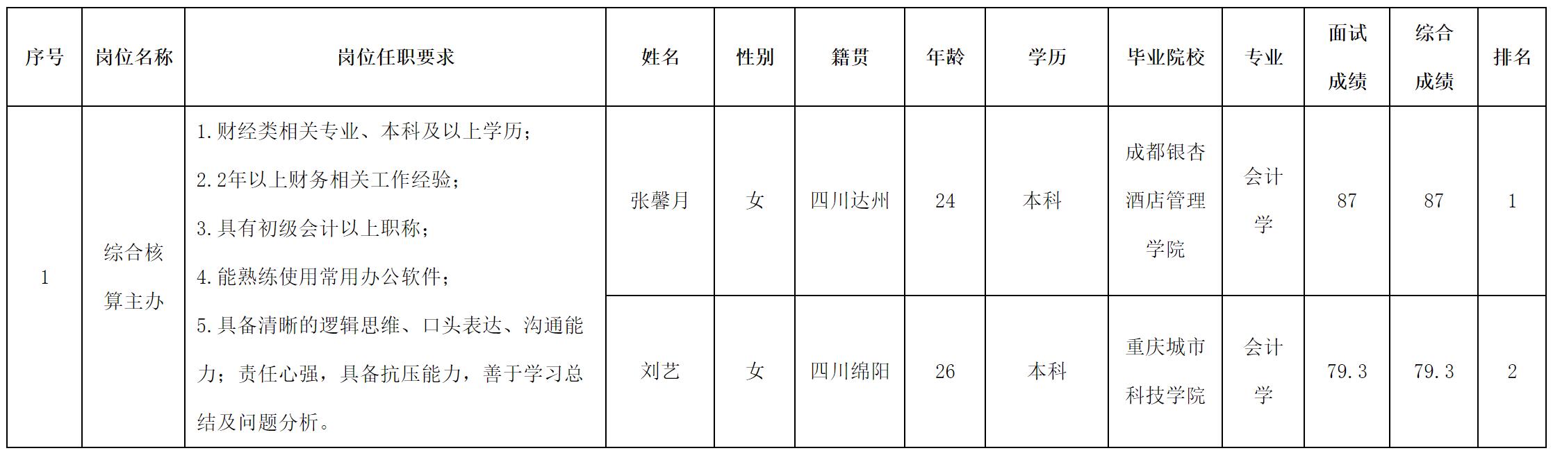 根据四川长虹电器股份有限公司财务云中心发布的招聘公告及招聘相关规定,现将面试成绩予以公示。
