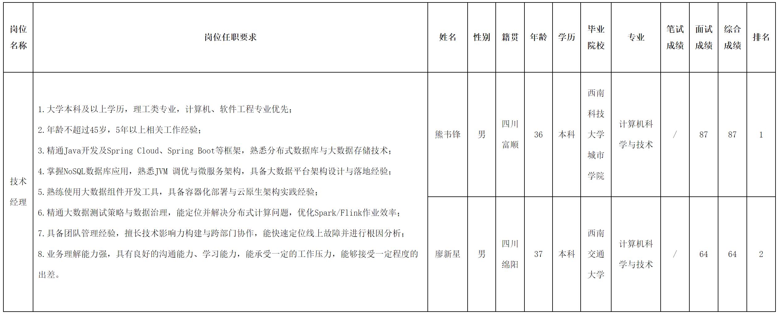 根据四川虹信软件股份有限公司发布的招聘公告及招聘相关规定,经面试等程序,现将测试成绩予以公示。