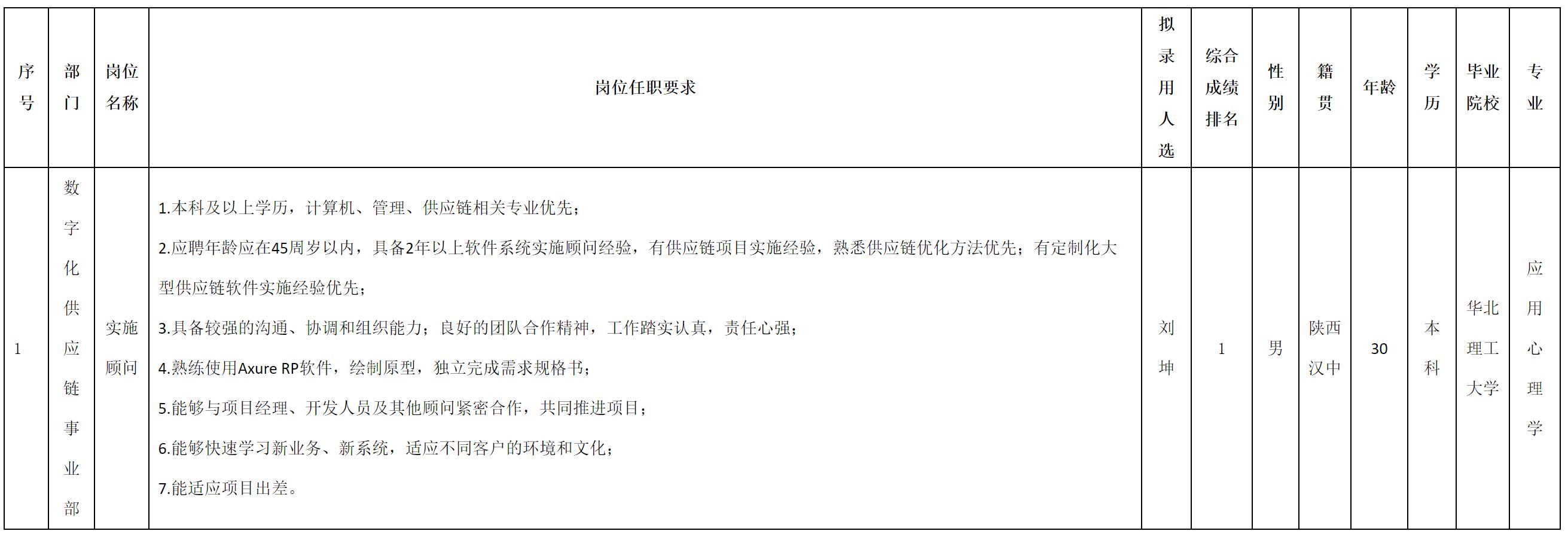 根据四川虹信软件股份有限公司发布的招聘公告及招聘相关规定,经测试、考察、体检等程序,拟录用刘坤同志到四川虹信软件股份有限公司工作,现予以公示,具体情况如下: