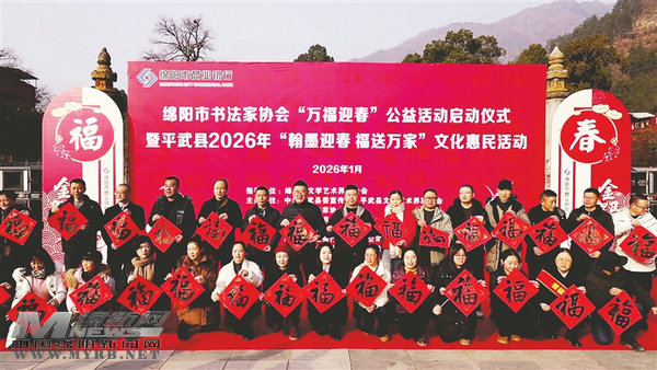 绵阳新闻网讯 近日,绵阳市书法家协会“万福迎春”公益活动启动仪式暨平武县2026年“翰墨迎春 福送万家”文化惠民活动,在平武县城报恩寺广场热闹启幕,墨香迎新春,福韵暖民心。