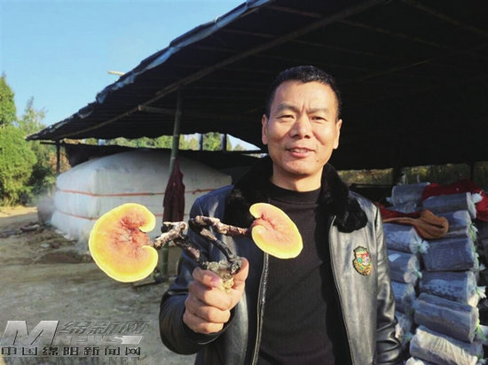 灵云仙芝家庭农场负责人展示基地种植的灵芝。 记者 陈元松 摄