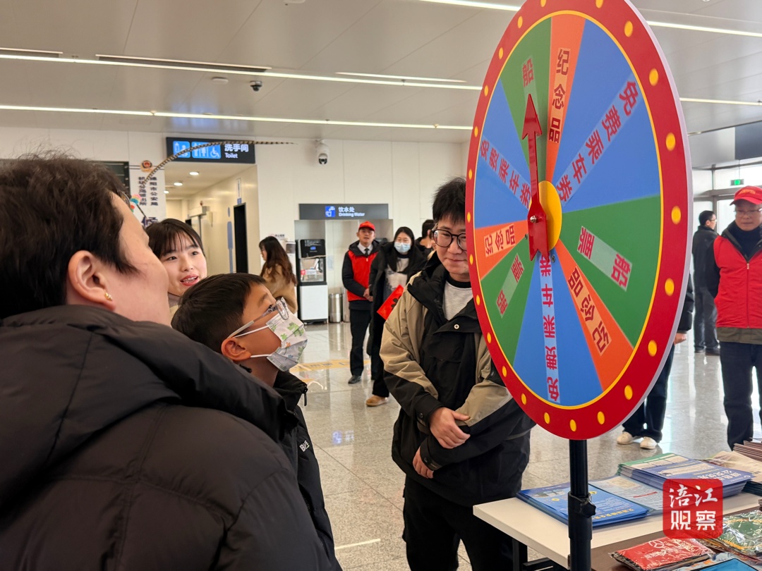 活动现场,绵阳市文广旅局联合市交通运输局开展了道路运输安全出行宣传与服务推广。工作人员为旅客发放绵阳文旅手绘地图等宣传资料、解答咨询,普及道路安全知识,并推荐公交车、定制客运、旅游包车等绿色出行方式。现场还设置了互动游戏环节,旅客可参与转盘抽奖,赢取乘车免单券、船票、交通主题纪念品等福利。
