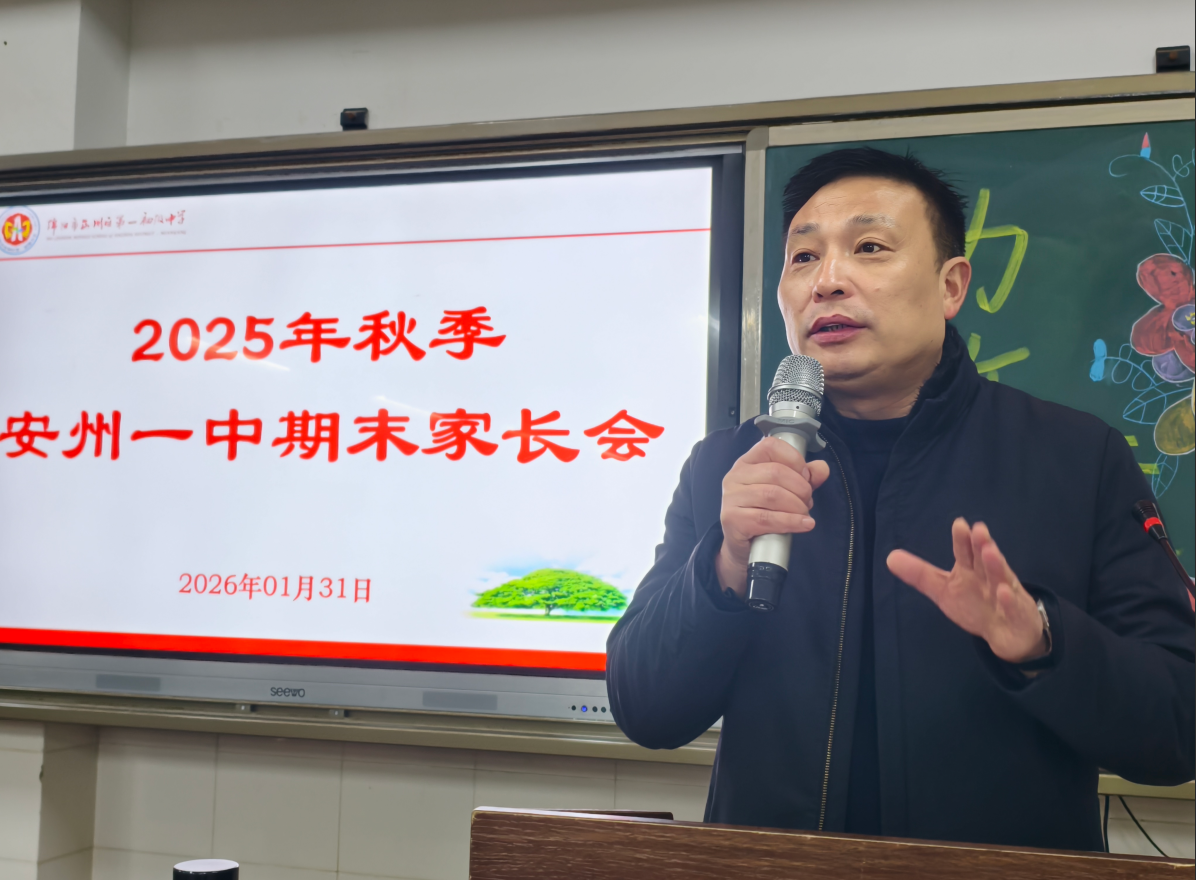 为了进一步加强家校沟通,凝聚育人合力,共同引导学生度过一个充实、安全、高效的寒假,1月30—31日,安州区第一初级中学先后组织召开了“家校协同,共育未来”为主题的七、八、九年级2025年秋期末家长会。会议通过校级集中交流与分班沟通相结合的形式,搭建起家校真诚对话、携手共进的桥梁。