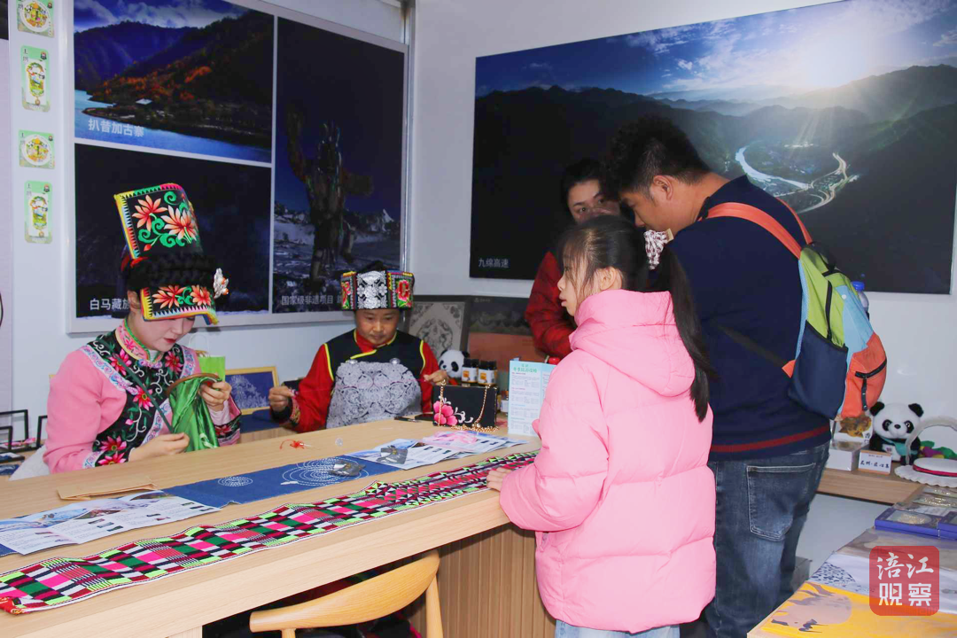 走进“青睐绵阳”主题集装箱,仿佛推开了一扇扇通往绵阳的窗。北川羌绣、羌族草编、三台剪纸、李白诗意绣等非遗项目一字排开,传承人现场展示指尖技艺,引得不少游客驻足体验。一旁,“绵阳好物”展示区里,江油太白酥、梓潼争气弹、平武报恩飨珍等特色产品琳琅满目,不少游客、市民一边品尝一边扫码下单。