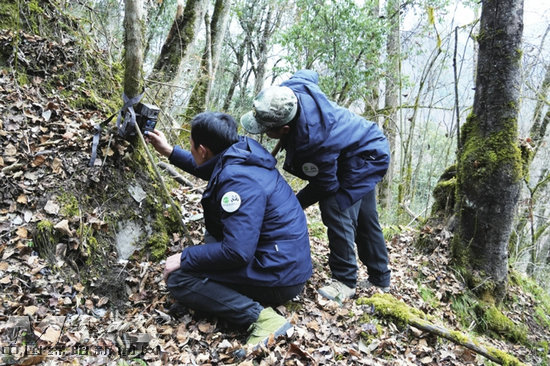 “最近高海拔雪大,动物都下山找吃的来了。” 行至海拔2100米处,59岁的巡护员格若塔瞥见一团新鲜的黑粪,当即认出是林麝的。