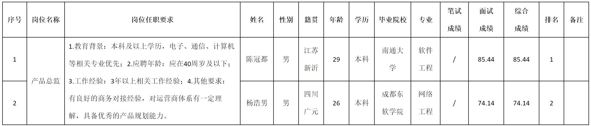 根据四川九州电子科技股份有限公司发布的招聘公告及招聘相关规定,现将测试成绩予以公示。