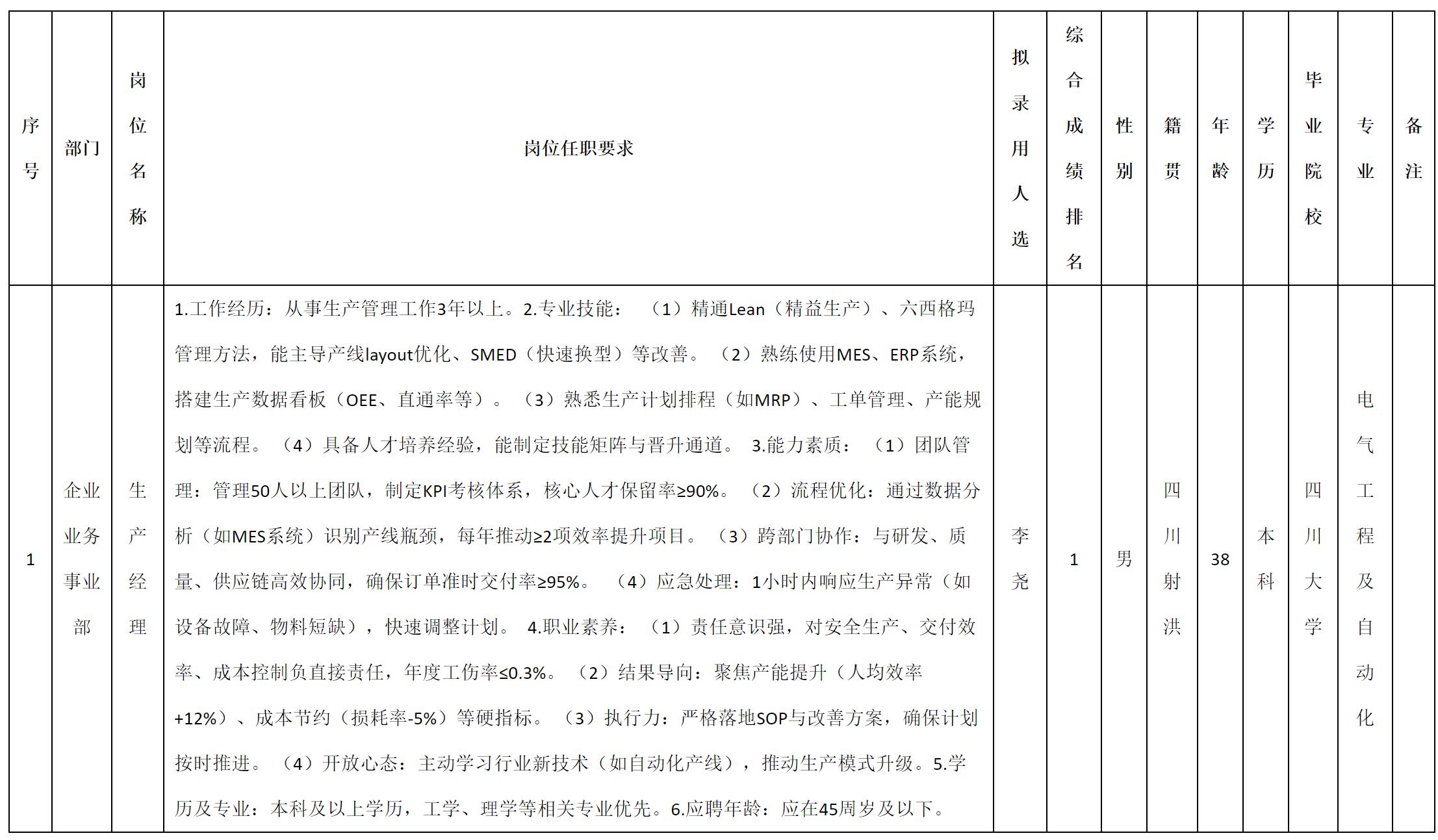 根据四川九州电子科技股份有限公司发布的招聘公告及招聘相关规定,经测试、考察、体检等程序,拟录用李尧同志到四川九州电子科技股份有限公司工作,现予以公示,具体情况如下: