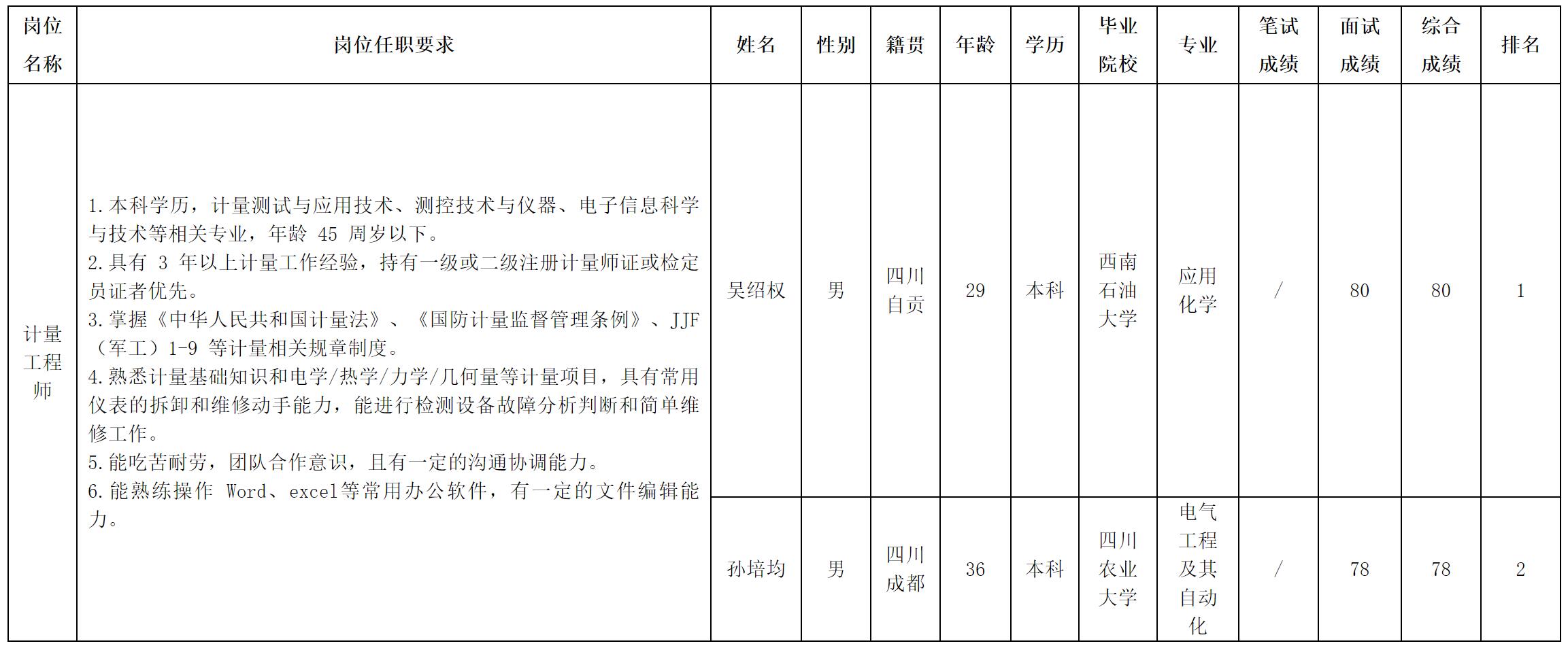 根据四川华丰科技股份有限公司发布的招聘公告及招聘相关规定,经面试等程序,现将测试成绩予以公示。