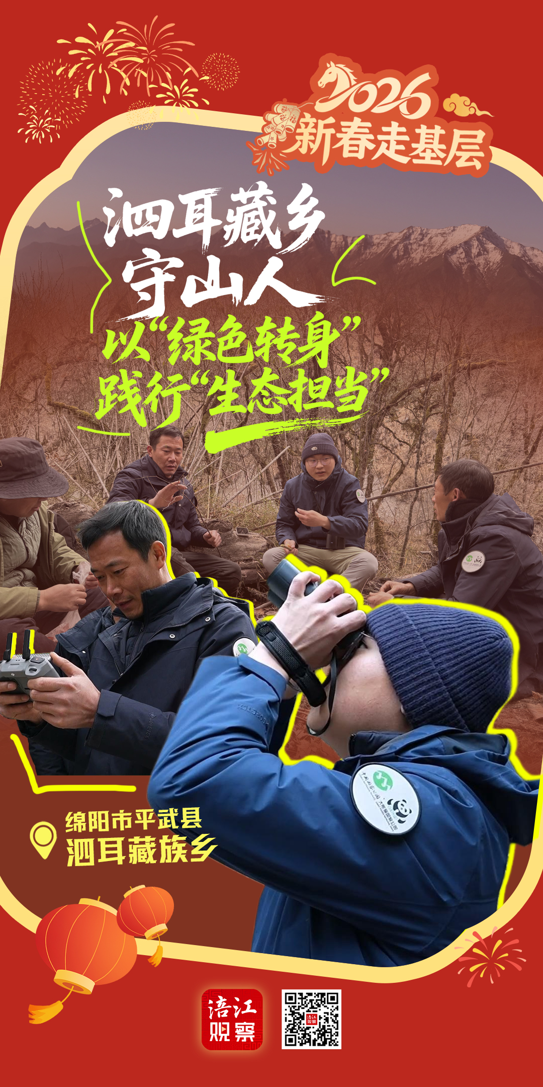 纳马居从猎人到守护者的转身,藏着对山林的愧疚与敬畏;刘敏带着专业知识扎根深山,彰显着青年担当。老巡护员的“土办法”是岁月沉淀的智慧,年轻人的“新知识”是科学保护的底气,二者相融,才让泗耳的生态故事有了绵长动人的生命力。这场“新春走基层”,我们不仅看到了山川的变迁,更看到了人与自然共生的希望——原来最动人的守护,从来都是“有人把脚步留在过去,有人把希望带向未来”。