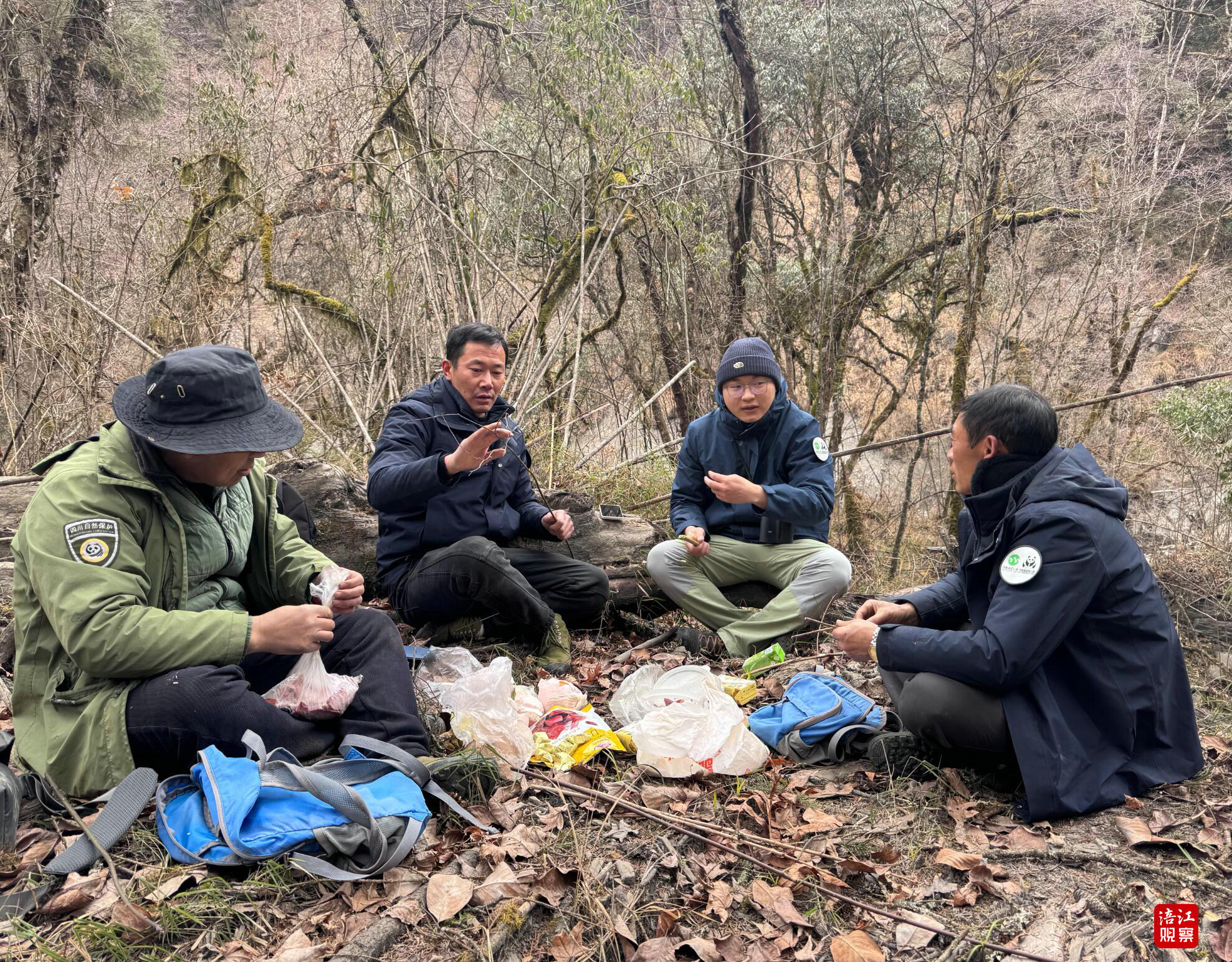 进山第一课是读懂风。出发没多久,一位巡护员抓了把落叶,撒向空中,看它飘落的方向判断道:“东南风,二级。”保护区禁火,这份观风的直觉,是他们进山的基本功。