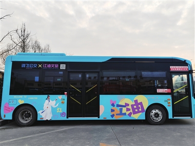 文化IP纯电动公交车亮相江油街头。 记者 陈元松 摄