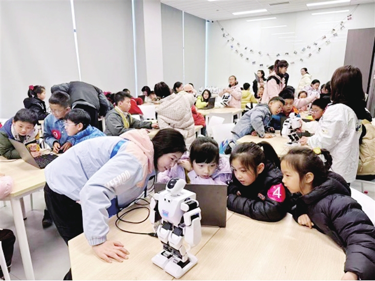 试运行活动现场,STEM科学秀以“掌中火”“无人机足球”等创新实验开启科技启蒙之旅。学生们在人工智能数字展厅亲眼见证AI作诗绘画创作过程,通过智慧交通大屏实时观测城市交通动态,更在模拟城市规划实践中,通过团队协作设计交通系统。五年级学生张晓萌兴奋地表示:“通过编程让机器人完成障碍挑战,让我真正体会到人工智能如何改变生活。”