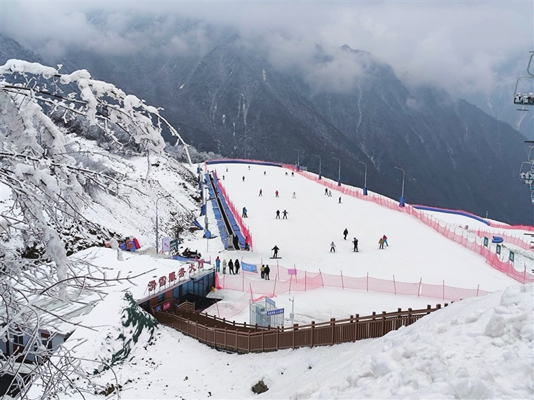 虎牙滑雪场位于虎牙大峡谷腹地,拥有岷山山脉高海拔、低气温的自然积雪条件,辅以人工造雪,开展季节性冰雪项目条件优越。去年6月,总投资约1.5亿元的雪场启动建设,仅半年便落成。一期建成雪道总面积约8万平方米,配建游客中心、戏雪道、索道、魔毯及千余套进口滑雪器材,滑雪场于今年1月21日启动试运营。