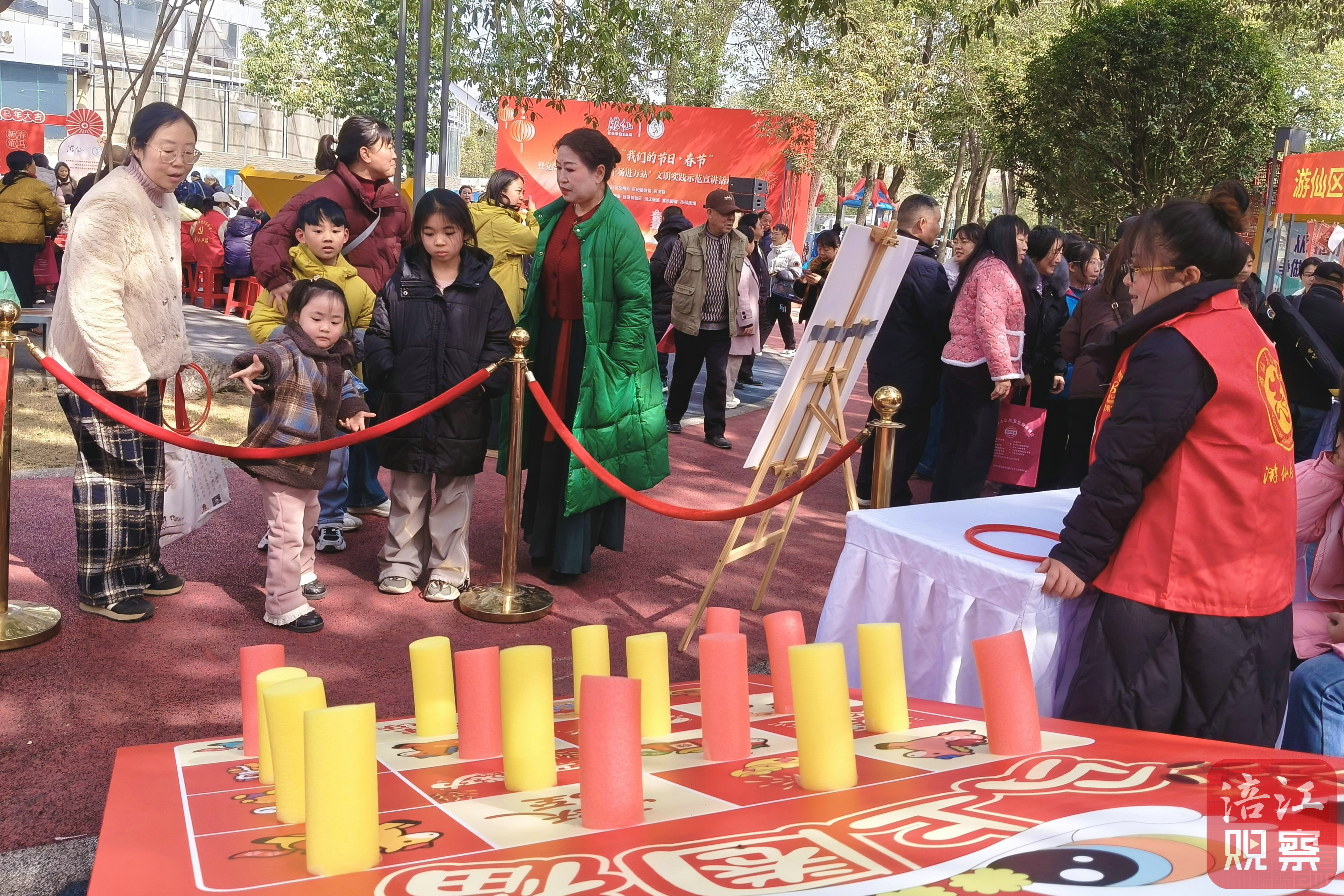 “小马套圈”“投壶纳福”“马年集福”“新春赛马”“花开富贵”……趣味游戏轮番上阵,老少皆宜、妙趣横生,现场笑声不断、热闹非凡。
