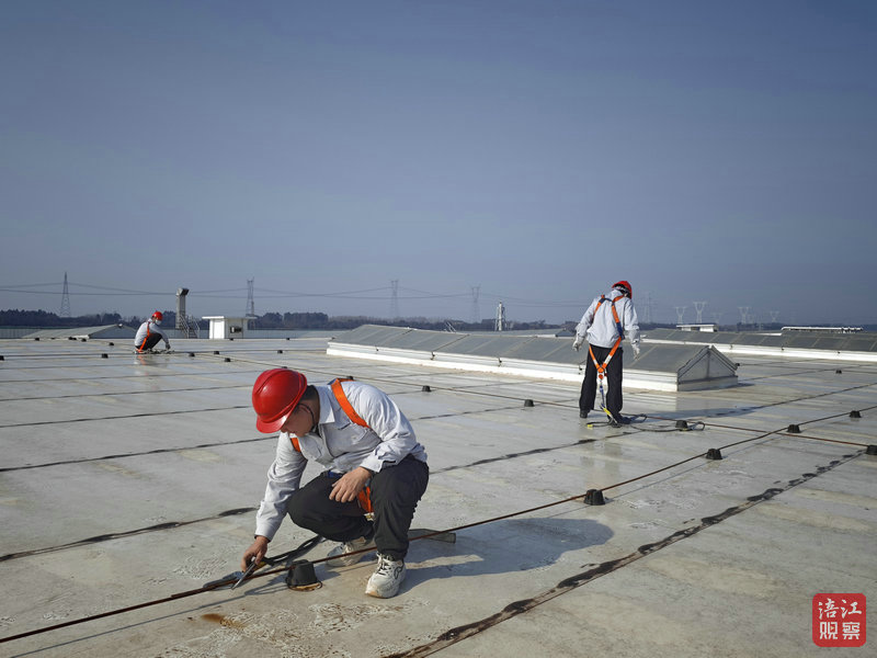 2月12日,在绵阳高新埃克森新能源科技有限公司的厂区屋顶,几名技术人员正在进行光伏项目铺设前的结构安全勘测。