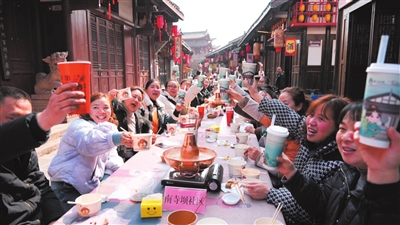 潼川古城长桌宴吃出欢乐年味。记者 李春梅 摄