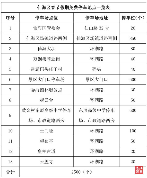 此外,春节假期,仙海区2500个停车位全部免费,让大家轻轻松松开启仙海之旅。
