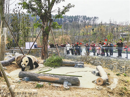 绵阳中华大熊猫苑,游客观赏大熊猫。记者 李春梅 摄