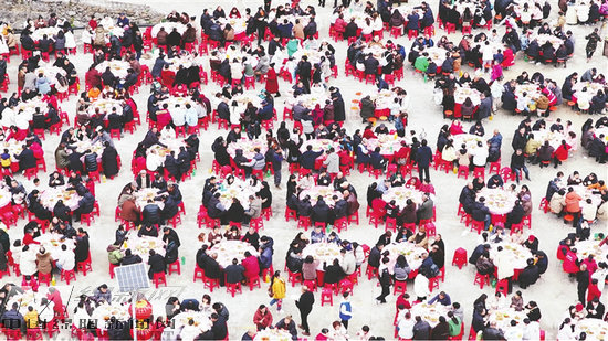 “上菜喽……”随着民宿主理人清亮的吆喝声,桑枣镇“遇见栖心”民宿院坝里,100多张圆桌次第摆开。蒸烧白冒着热气、香碗里浮着金黄蛋饺、腊味拼盘油光发亮,连装菜的土陶碗都透着年深日久的温润。“我们提前3天就开始备料,村民送来自家腌的香肠,民宿厨房掌勺,每道菜都带着‘家的密码’。”民宿主理人肖婷婷边给游客布菜边介绍道。