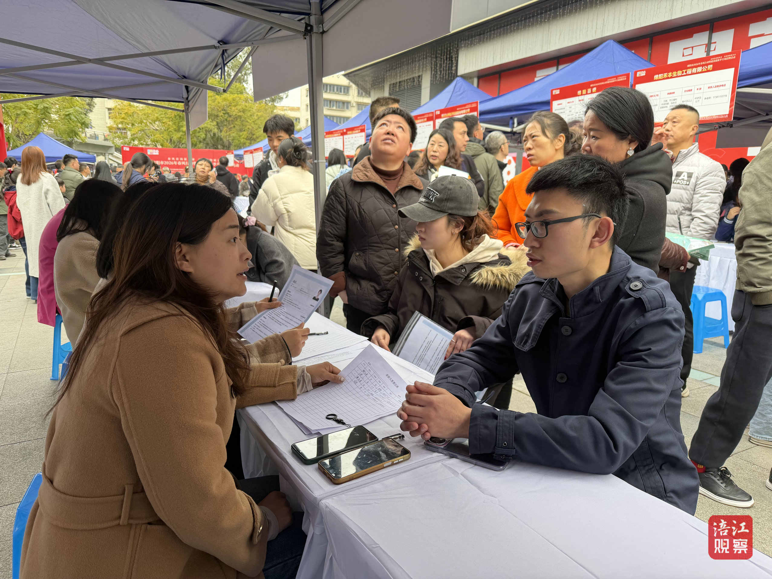 “有没有五险一金?”“夜班有什么补助?”……招聘会现场人头攒动、气氛热烈,一派供需两旺的繁忙景象。