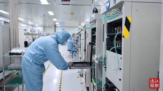 订单爆满,生产线必须“跑”起来。在企业的5G光模块生产车间,15条产线正开足马力,24小时不停机,满负荷运转。一颗颗小小的光模块在精密设备中流转,它们将被应用于5G通信、云计算和AI算力中心,成为数字经济的“底座”。