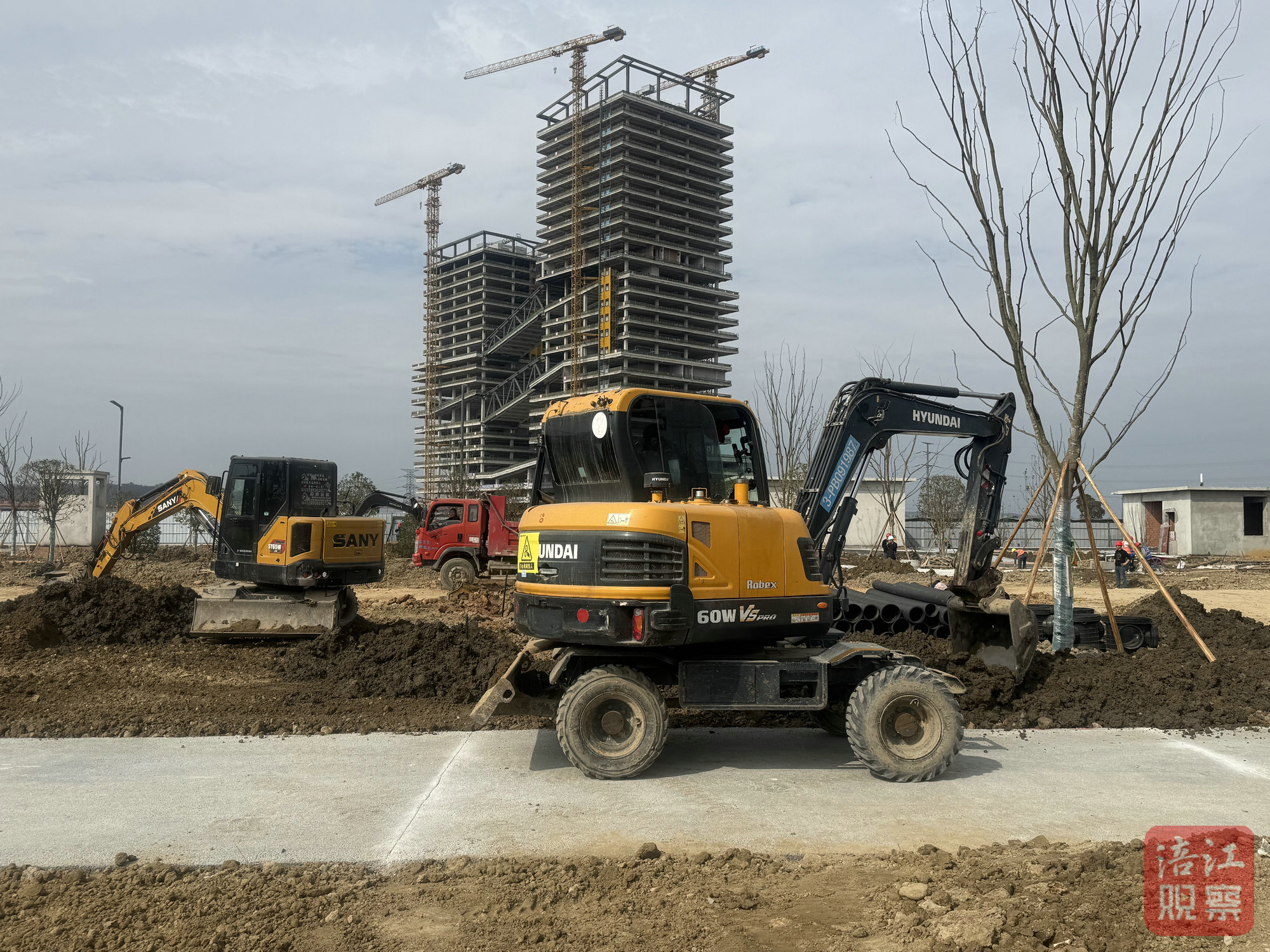 记者在现场看见,数十名施工人员佩戴好安全帽忙碌在各个角落,挖掘机、渣土车等工程车辆往来穿梭,主体施工区域的作业面全面铺开,一派繁忙景象。