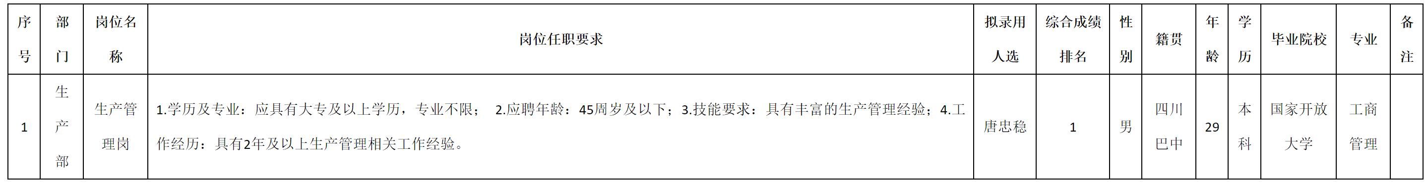 根据四川九华光子通信技术有限公司发布的招聘公告及招聘相关规定,经测试、考察、体检等程序,拟录用唐忠稳同志到四川九华光子通信技术有限公司工作,现予以公示,具体情况如下: