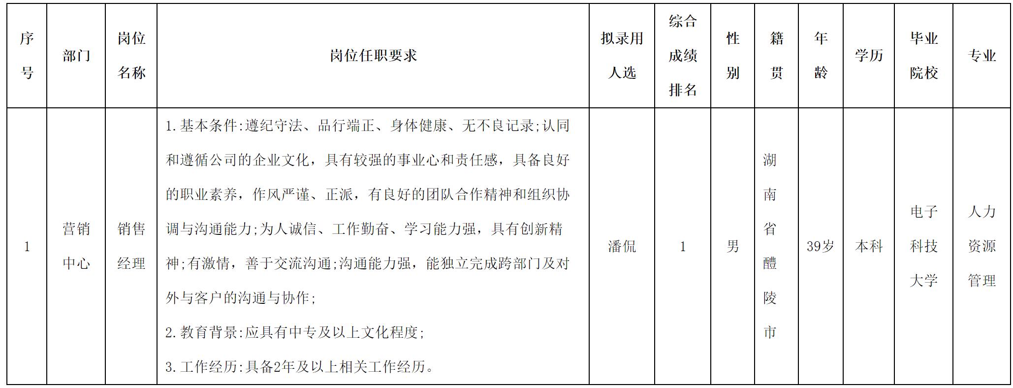 根据四川爱联科技股份有限公司发布的招聘公告及招聘相关规定,经面试,拟录用潘侃同志到营销中心工作,现予以公示,具体情况如下: