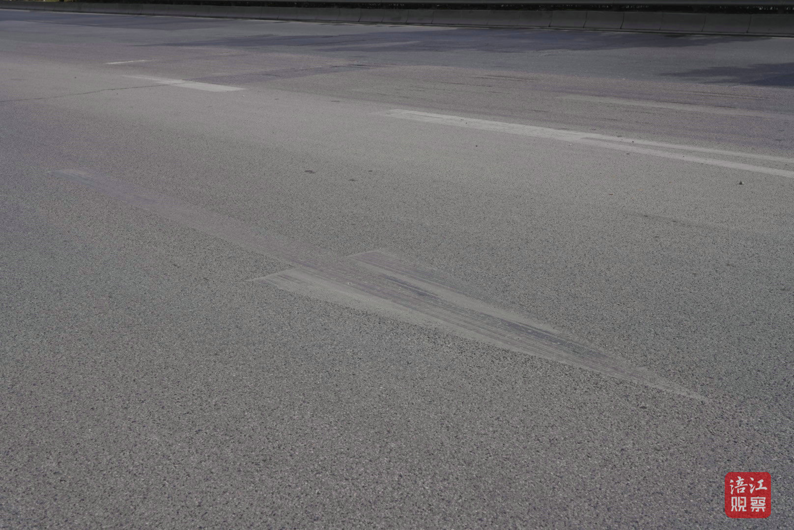 与此同时,记者还注意到,一些新修补路面仅完成基础修复工作,并未同步施划交通标线,路面衔接处之间形成了明显的标线“空白段”。其中,九洲立交至凤凰立交路段问题尤为突出。记者粗略数了数,在这约9公里长的路段上,车道分界线不清晰或缺失的点位多达20余处。