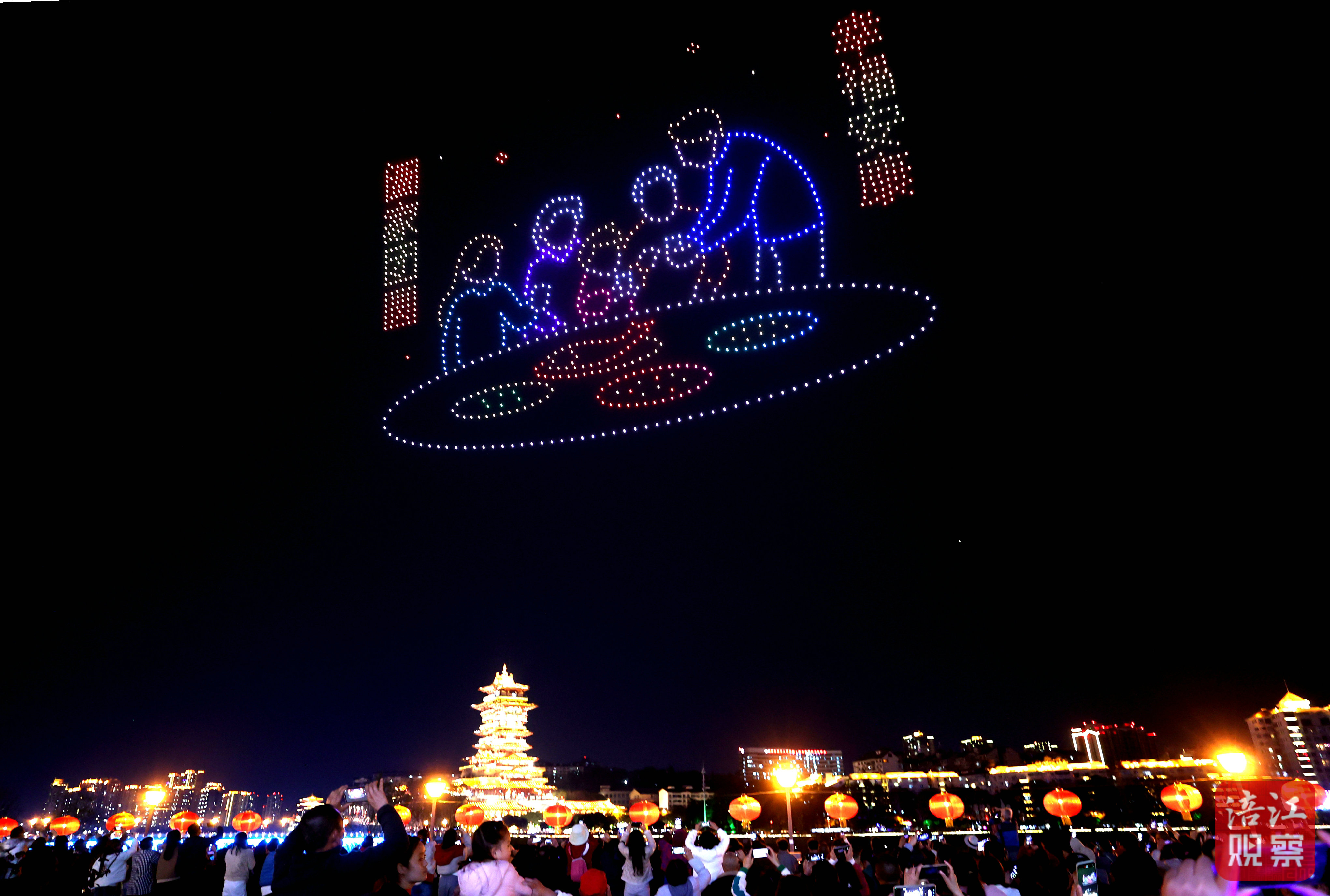 绵阳新闻网讯 色彩斑斓的灯光亮起,涪江两岸魅力尽显;无人机编队腾空而起,在夜空中不停变幻……3月1日晚,由绵阳文旅投集团倾力打造的大型无人机表演秀震撼上演,千架无人机以夜空为幕、光影为笔,串联马年元素与区县文旅风光,为市民游客呈现了一场兼具视觉冲击力与文化感染力的新春视觉盛宴,用数字光影书写绵阳的文化底蕴与发展活力。