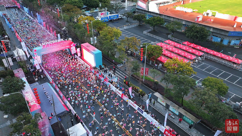 记者在活动现场看到,还没起跑,主会场就已经人气拉满,“肥肠宝贝”热舞、街舞串烧、活力热身操轮番上演,最震撼的当属万人齐诵《静夜思》,千年诗句与现代奔跑撞个满怀,国风氛围直接拉满。