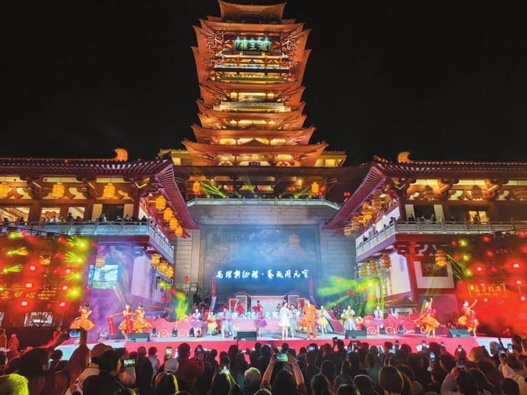 绵阳新闻网讯 3月3日晚,由绵阳市文化广播电视和旅游局主办、绵阳市文化馆等承办的“马跃新征程 艺趣闹元宵”绵阳市2026年元宵节文艺展演在越王楼广场举行。演出以传统民俗与现代艺术交相辉映的方式,为市民献上一场充满年味的文化大餐。