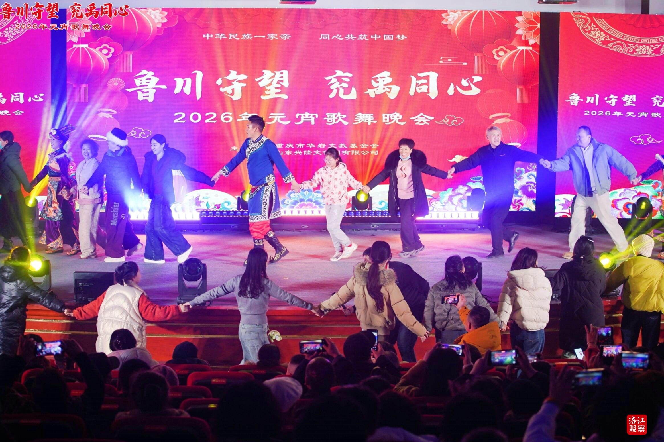 演出尾声,欢快的集体舞《团圆锅庄》点燃了全场热情,演员与观众手拉手、心连心,在欢歌笑语中跳出了民族团结一家亲的和谐乐章。