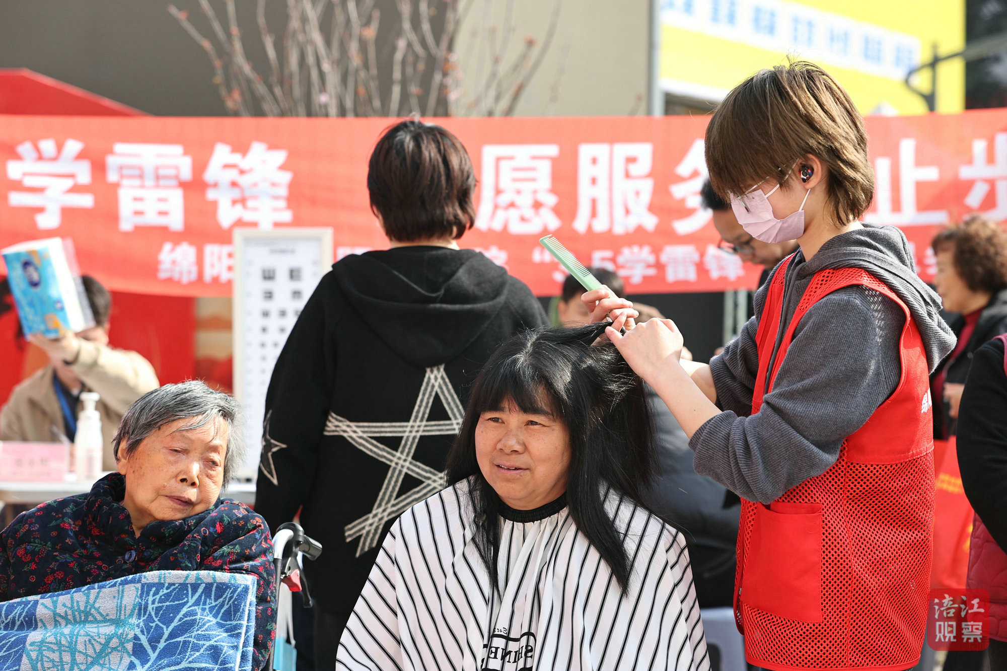 在互动体验与技能实操区,绵阳市蒲公英救援队队员母继超正在“手把手”地教授心肺复苏术,吸引市民驻足学习;志愿者余祥瑞则开辟“流动理发角”,为市民解决“头”等大事,现场暖意融融。“以后会一直坚持参与志愿服务活动,能用自己的手艺去温暖别人。同时也希望通过活动,让我们记住雷锋的这种精神,舍己利他。”余祥瑞说。